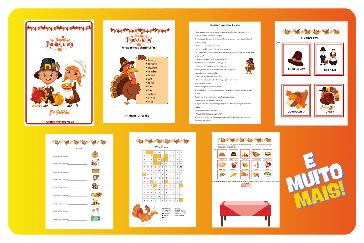 ✅ Bônus HAPPY THANKSGIVING – 62 págs de atividades gerais com texto de interpretação (Novo)