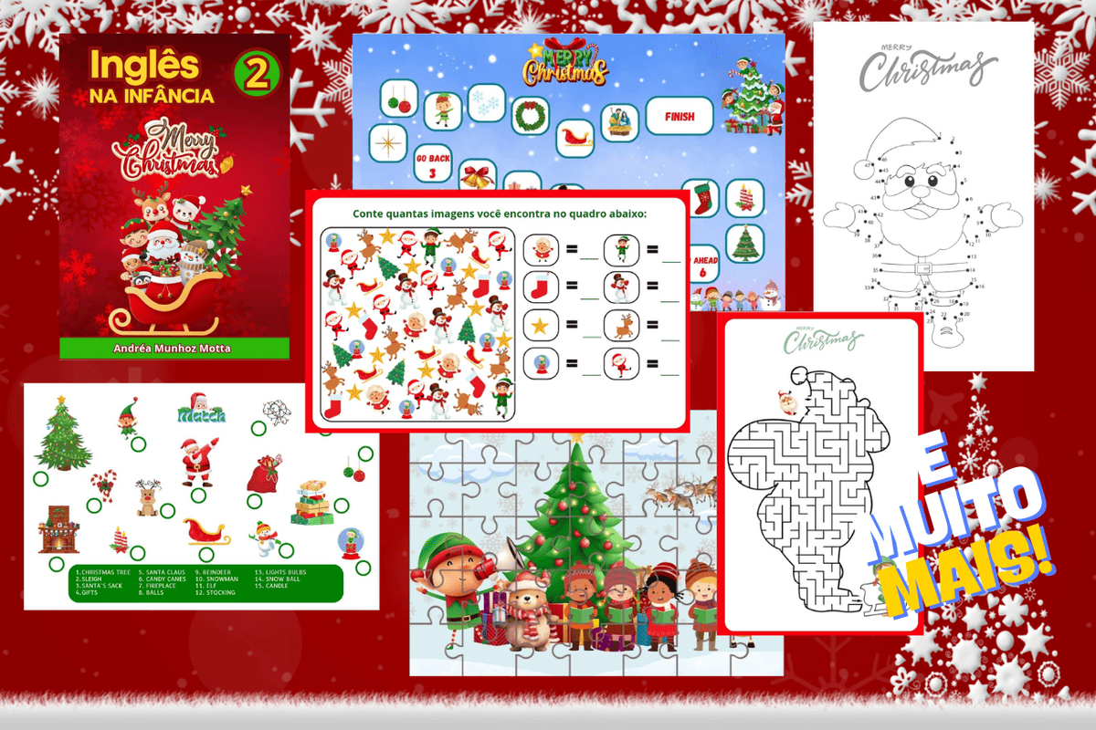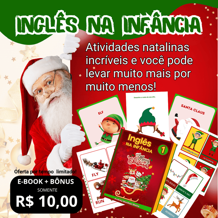Com os E-books Inglês na Infância você não precisa se preocupar. Ensine o inglês de forma leve, divertida e pedagógica com o e-book Happy Christmas. Com este e-book exclusivo você vai ensinar de forma lúdica e significativa. Ensinar o inglês de forma divertida, faz toda a diferença e isso fará com que as crianças, de 7 a 12 anos pratiquem suas habilidades linguísticas aumentando o seu vocabulário.
